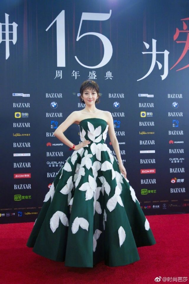 景甜hold住了綠色蓬蓬裙,沒(méi)有hold住新發(fā)型。