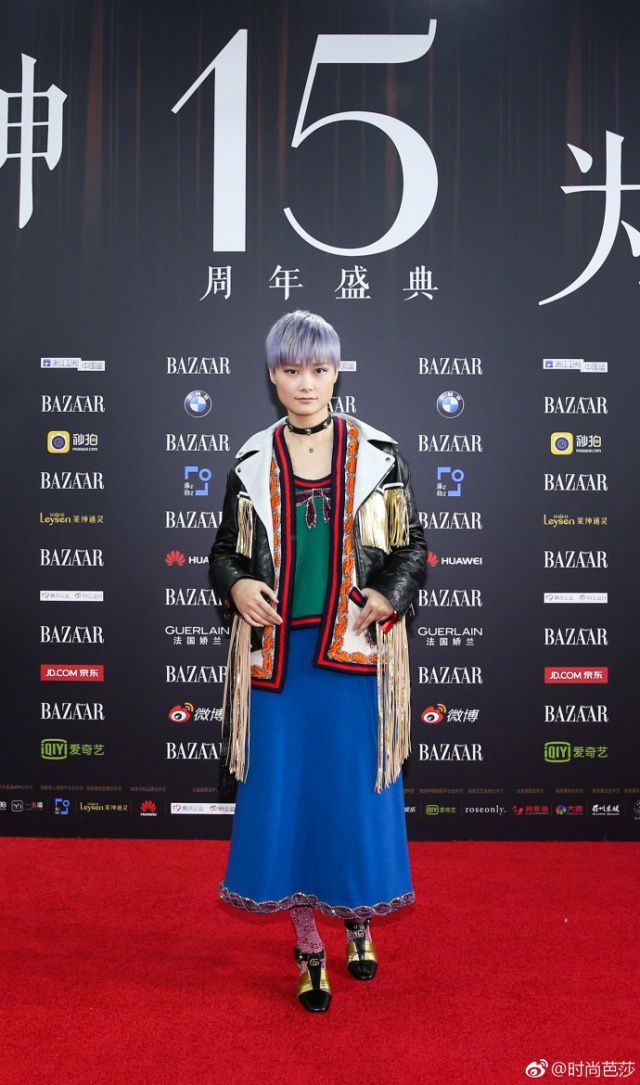 紫色長(zhǎng)襪、寶藍(lán)長(zhǎng)裙、墨綠上衣、黑皮流蘇外套、奶奶灰短發(fā),混搭玩到這個(gè)程度的還有誰(shuí)?真心敗給李宇春。
