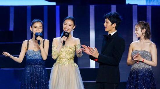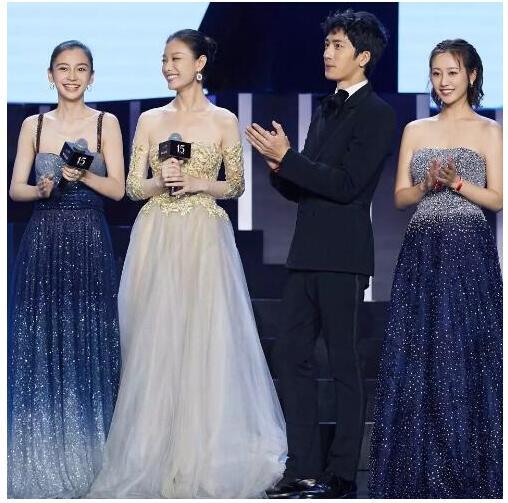 baby身著一襲漸變色長(zhǎng)裙星光長(zhǎng)裙,閃瞎你的眼了沒(méi)???尷尬的時(shí)刻來(lái)了,同臺(tái)的李純也是星光裙。