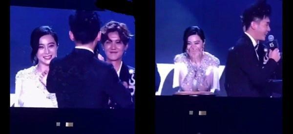 現(xiàn)在李晨&范冰冰坐在臺(tái)下聽(tīng)李治廷唱歌......
