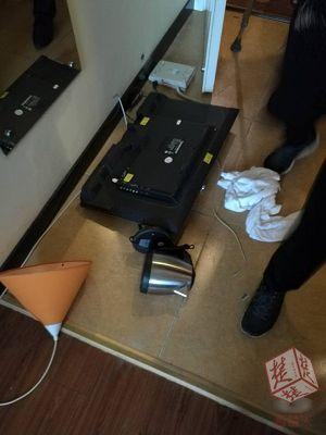 無奈,酒店工作人員只好用樓層房卡將6038號房打開。打開門,眾人驚呆了!一個沒穿上衣的小伙子正在玩手機(jī),房內(nèi)的電話機(jī)、電水壺、臺燈、電視機(jī)都被砸了,甚至連床板都拆了……