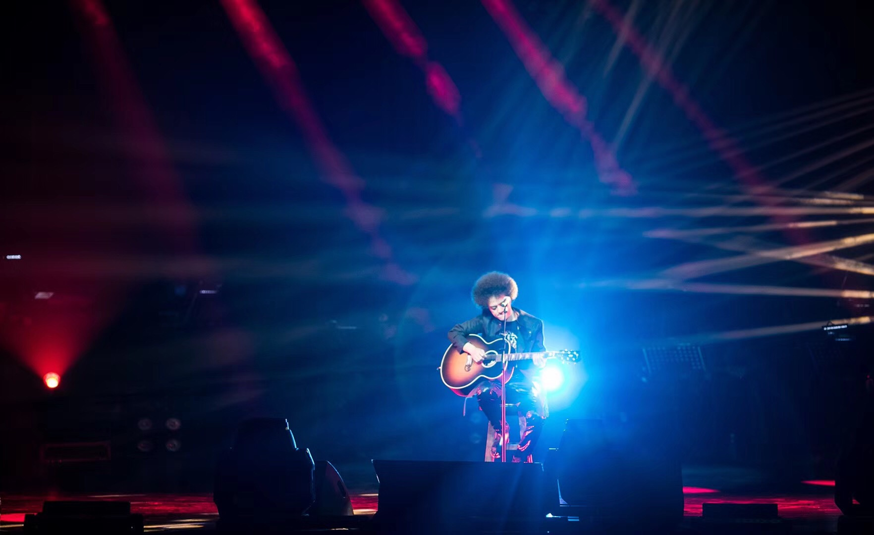 雖然是首次開演唱會,但是絲毫難不住在樂壇闖蕩十幾年的“老司機”趙英俊。演唱會以《悟空傳》拉開序幕,熱血燃情的歌詞和旋律瞬間驅(qū)走冬日的寒冷,點燃了現(xiàn)場氣氛。演唱會上,趙英俊除了演唱了代表作《大王叫我來巡山》、《守候》、《方的言》等代表作,也演唱了為王菲寫的《清風徐來》和為李宇春寫的《唐人街》,更是首次翻唱崔健《一無所有》、鮑勃迪倫《敲開天堂之門》等經(jīng)典曲目。