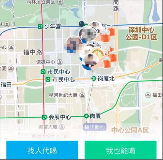 用戶在軟件中輸入或設置自己的位置,手機畫面的地圖上就會顯示出附近的 “代喝人”。這些“代喝人”在提供“代喝”服務之前,會提前在軟件上的個人信息中寫明自己的酒量、喜歡的酒類以及性別等基本信息。無論是誰都可以成為代喝人。