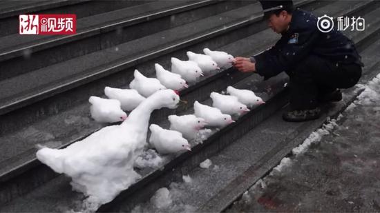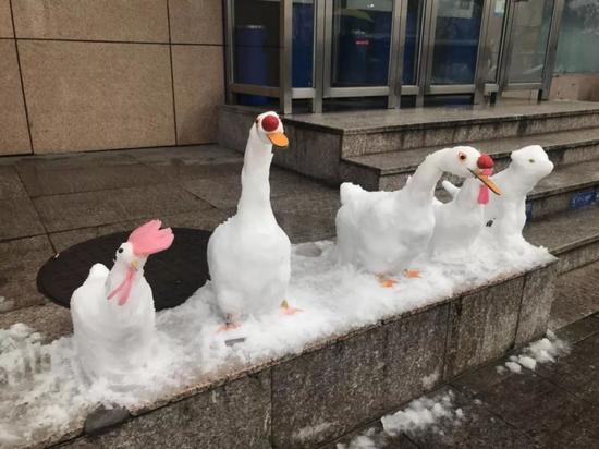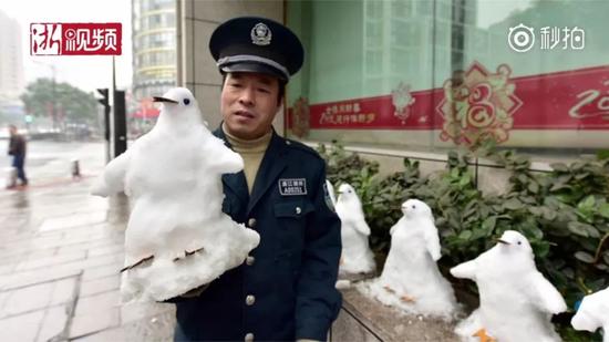 原標題:下雪后,這位保安堆了個動物園!萌得心肝兒都化了…