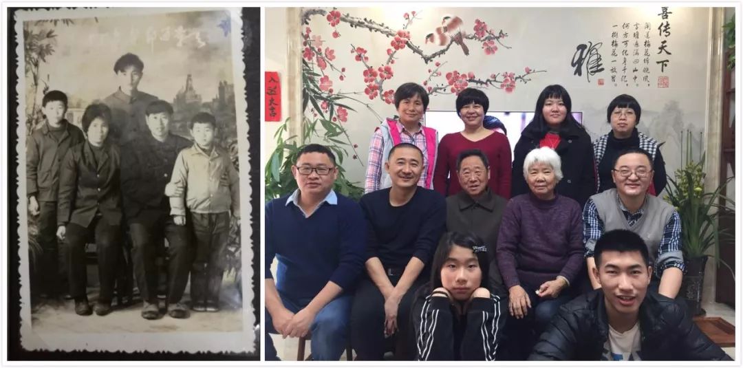 這兩張全家福照片,一張是三十多年前的春節(jié)期間的合影,一張是這個(gè)除夕我們大家庭的合影。