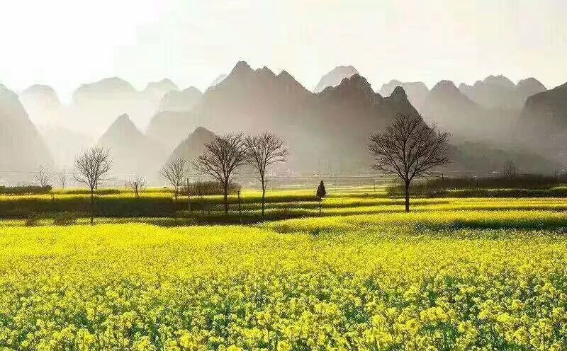 前幾天路過(guò)萬(wàn)峰林時(shí),山邊田里的油菜花也相續(xù)開放了。