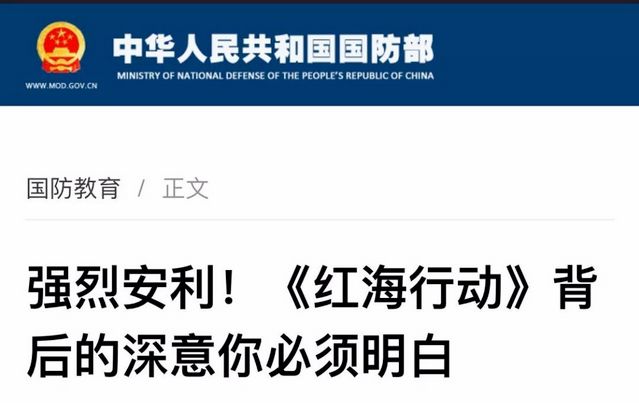 就連中國國防部也為它強(qiáng)勢“打call”,在其官網(wǎng)轉(zhuǎn)發(fā)一篇名為《強(qiáng)烈安利!〈紅海行動(dòng)〉背后的深意你必須明白》的文章。