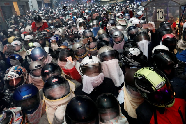 2018年3月2日,臺灣臺南,鹽水蜂炮火熱登場。鹽水蜂炮是臺灣元宵節(jié)時著名的地方民俗活動,指許多沖天炮組成的大型發(fā)炮臺,點燃時萬炮齊發(fā),有如蜂群傾巢而出,故稱“蜂炮”。