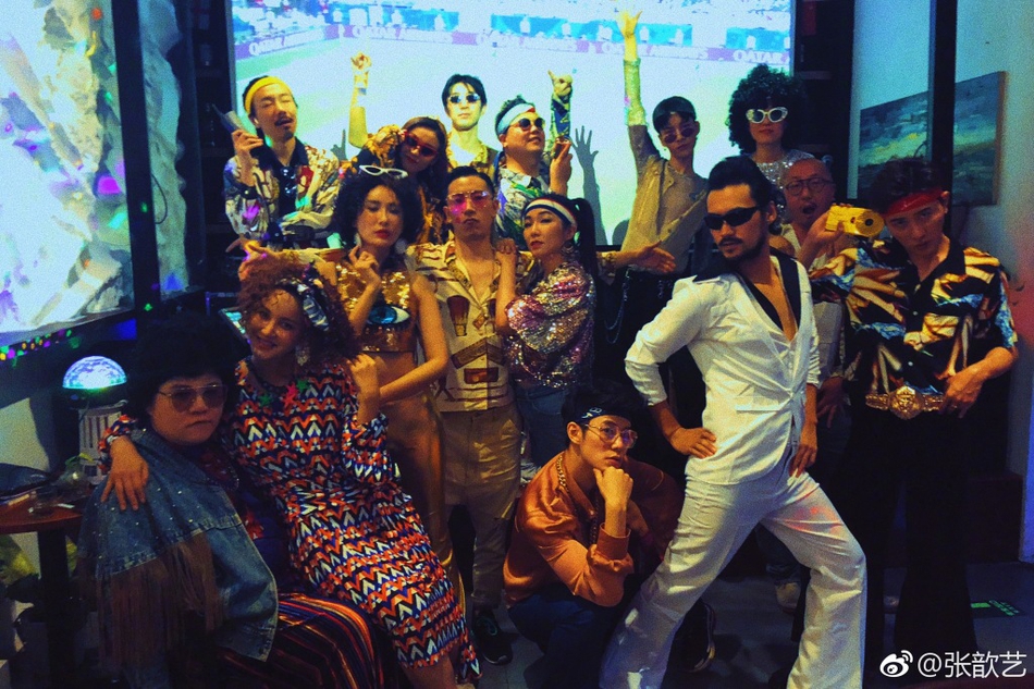 新浪娛樂訊 3日,張歆藝在微博曬出party照,并配文:“復古disco趴梯,我男人為了冠軍是有多么拼?!闭掌校瑥堨嚺c袁弘領銜,眾人都是上世紀80年代舞廳disco復古風的打扮,群魔亂舞的畫面有點辣眼。