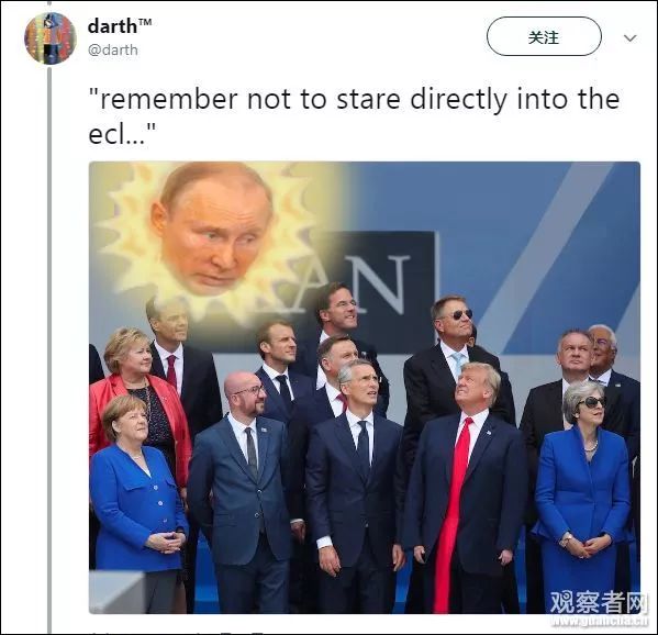 該照片目前已經(jīng)被西方各大主流媒體使用,作為其報(bào)道北約峰會(huì)的頭圖,比如美國(guó)《新聞周刊》、《時(shí)代》等。