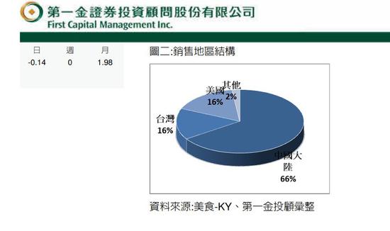 數(shù)據(jù)顯示這家來自臺(tái)灣省的餐飲企業(yè)對(duì)大陸市場(chǎng)很是依賴,其母公司“美食-KY”2017年第三季度的營收中有66%是來自大陸地區(qū)的562家店鋪,而臺(tái)灣地區(qū)的營收占比則僅為16%。