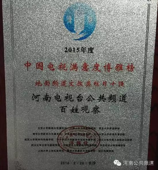 《百姓觀察》欄目榮獲2015年度中國(guó)電視滿(mǎn)意度博雅榜,地面頻道文教類(lèi)欄目十強(qiáng)!