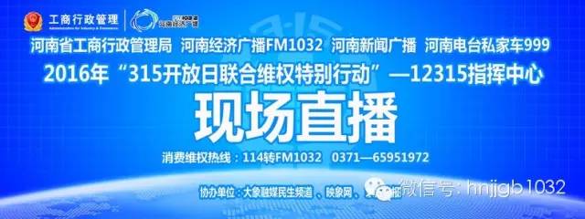 2015年3月12日,河南經(jīng)濟(jì)廣播、河南省工商局聯(lián)合舉辦“315開放日聯(lián)合維權(quán)行動(dòng)”,本次直播融合了大象融媒旗下網(wǎng)絡(luò)、電視、報(bào)紙的力量,映象網(wǎng)全程同步視頻直播,河南電視臺(tái)民生頻道“民生大參考”圖像、聲音直觀呈現(xiàn),東方今報(bào)也進(jìn)行了報(bào)道。同時(shí),河南經(jīng)濟(jì)廣播的官方微博、微信也進(jìn)行了同步直播。