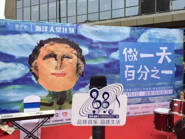 4月2日下午,由我們魅力881河南第一音樂廣播主辦的一場關(guān)愛自閉癥人群的“做一天百分之一”活動(dòng),在中原萬達(dá)廣場,暖心上演。100個(gè)家庭、80名大學(xué)生志愿者和其它社會(huì)群眾,用他們獨(dú)有的方式,共同倡導(dǎo)全社會(huì)共同關(guān)愛自閉癥患者群體。