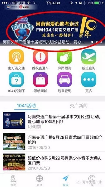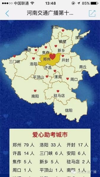 高考期間,河南交通廣播倡導(dǎo)全省車友綠色出行、在交廣領(lǐng)航上用愛心點亮河南地圖;