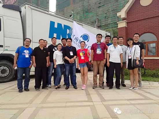 有河南新聞廣播的聽眾粉絲在直播車前互相留影