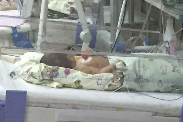 目前駐馬店病危嬰兒還在接受治療。