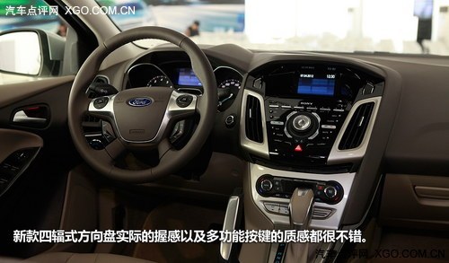 新??怂沟膬?nèi)飾設(shè)計(jì)更能激起你的駕駛欲望,炮筒型儀表、精致的四輻方向盤,無(wú)論是造型還是用料做工,相比老款都有質(zhì)的提升。為照顧家用定位,配色分為全黑和深淺上色兩種。并有SYNC車載多媒體通訊娛樂系統(tǒng)、智能無(wú)鑰匙動(dòng)力啟動(dòng)系統(tǒng)等配置提升舒適性。