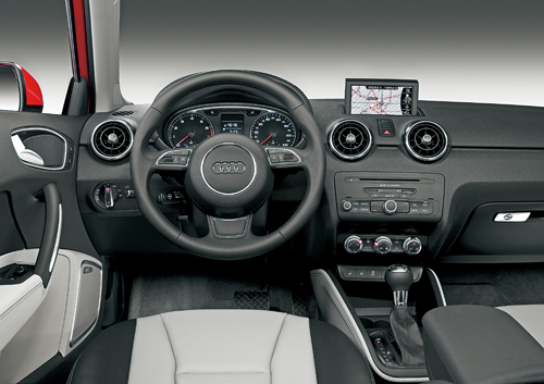 雖然是目前為止奧迪最小巧的車型,但A1的內(nèi)在質(zhì)量卻絲毫不遜于其他奧迪車型。黑色的主色調(diào)是突出運動性的好方法,雙色的真皮座椅包裹性極佳,尤其是在轉(zhuǎn)彎時對身體的側(cè)向支撐非常到位。除了座椅,A1空調(diào)出風(fēng)口的色彩還有黑色、黃色等多種色彩選擇,用細微的變化,就能讓整體內(nèi)飾變得更年輕化,更具活力,這無疑是一個很討巧的做法。