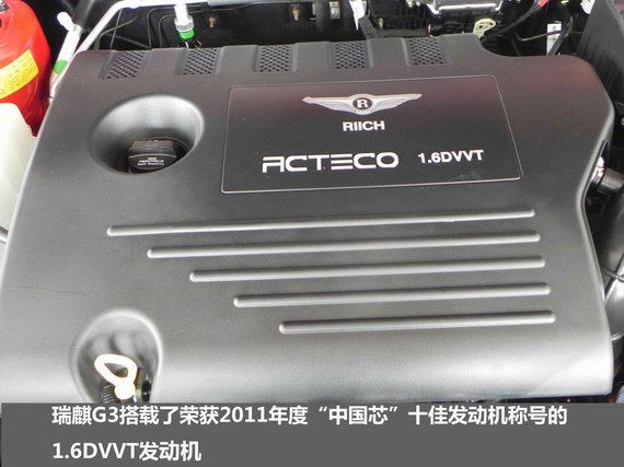 作為瑞麒品牌的第一款緊湊型汽車,瑞麒G3自去年12月上市以來,將瑞麒G系的核心理念——“秉持嚴謹?shù)脑燔嚴砟睿瑘猿謱夹g的苛求,打造高性能品質座駕”完美演繹,是一款集“高效動力及五項全能為一體的 “高效全能新家轎”。