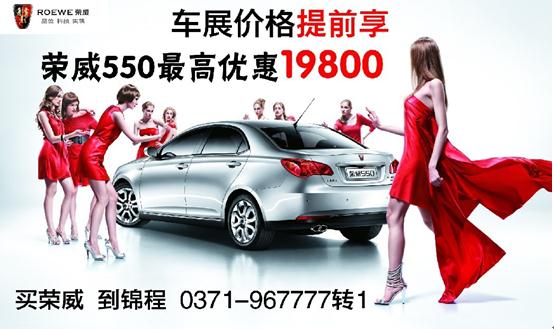 近日,編者從河南錦程榮威了解到,榮威車展價格提前享,榮威550最高直降1.98萬元。購榮威車的朋友們不用再擠車展,在優(yōu)雅的環(huán)境中提前享受有車生活,河南錦程榮威為廣大車友朋友們提供最實惠最保障的購車政策。買榮威汽車,到河南錦程看看再決定,搶購熱線:0371—967777轉1.