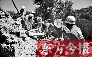 甘肅省定西市公安消防支隊(duì)官兵在岷縣梅川鎮(zhèn)馬家溝村展開救援