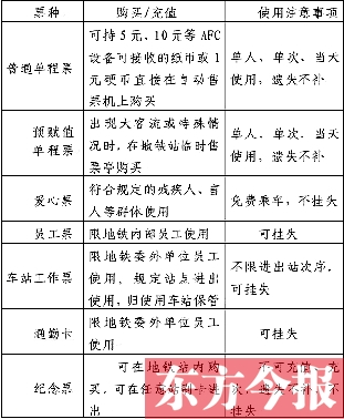 為了讓市民了解鄭州地鐵車票,運(yùn)營分公司還專門解釋了鄭州地鐵開通初期發(fā)行的主要票種及相關(guān)規(guī)定(見表格)。