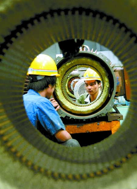 “轉(zhuǎn)方式、正風(fēng)氣、提效能”活動(dòng)讓南陽(yáng)的經(jīng)濟(jì)發(fā)展環(huán)境日益優(yōu)化,使許多大項(xiàng)目、大企業(yè)駛?cè)氚l(fā)展的快車道。圖為南陽(yáng)防爆集團(tuán)股份有限公司技術(shù)人員正在生產(chǎn)訂單出口防爆電機(jī)。