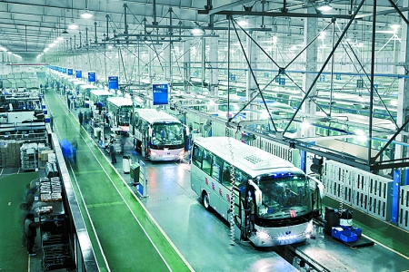 4月19日,現(xiàn)代化的宇通客車生產(chǎn)線正快速運(yùn)轉(zhuǎn)。今年一季度,鄭州宇通客車股份有限公司共銷售各類客車10168輛,成為行業(yè)內(nèi)唯一超過(guò)萬(wàn)輛的企業(yè)。其中,共出口各類客車1531輛,出口額達(dá)到了10.12億元,出口量和出口額均名列行業(yè)第一。 河南日?qǐng)?bào)記者 王 錚 攝