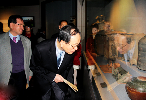 韓國(guó)朋友相繼參觀了河南博物院的《中原古代文明之光》基本陳列、《中原楚系青銅藝術(shù)館》、《河南古代玉器》、《河南明清館》等專(zhuān)題陳列的多個(gè)展覽。韓國(guó)朋友們精細(xì)地觀賞博物院陳展的文物,由衷感嘆中華民族祖先的智慧和博物院的陳列水準(zhǔn)。曾80多次訪華、第64次來(lái)河南的“中國(guó)通”許由先生頗為內(nèi)行的提問(wèn)令講解員和陪同參觀的中國(guó)人員刮目相看。中韓建交的20多年來(lái)許先生一直在為兩國(guó)及兩國(guó)人民的友誼盡其所能地做著工作,他曾多次率團(tuán)訪華,此次又為河南帶來(lái)了原首爾特別市瑞草區(qū)廳長(zhǎng)趙南浩、原空軍士官學(xué)校校長(zhǎng)吳昌煥和金星綜合電機(jī)株式會(huì)社會(huì)長(zhǎng)等新老朋友。