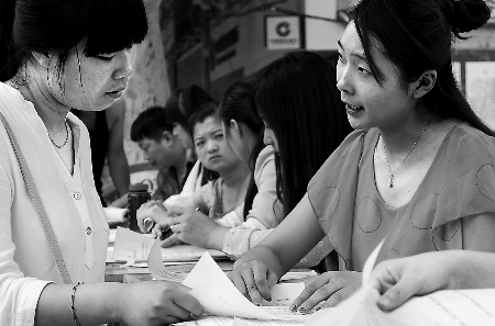 這也表現(xiàn)在當天的招聘活動上。在當天活動的鄭州主會場,即將大專畢業(yè)的朱康想找一份圖文設(shè)計的工作,這和她的專業(yè)對口。“挺難找的,好多是話務(wù)員、銷售、傳菜員之類的技能性不高的工作。放棄專業(yè)去做其他的,感覺沒有優(yōu)勢,未來發(fā)展空間也不大?!敝炜嫡f。