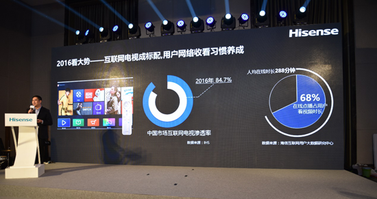 2016年,海信圍繞視頻、教育、游戲、購物四大核心業(yè)務持續(xù)提升用戶運營服務,互聯(lián)網(wǎng)電視激活用戶數(shù)達到2434萬,日活用戶數(shù)達到900萬,再創(chuàng)行業(yè)新高。海信電器總經(jīng)理胡劍涌表示,2017年,海信將通過用戶體驗和視頻服務升級打造互聯(lián)網(wǎng)電視第一用戶平臺。2017年海信互聯(lián)網(wǎng)電視運營目標是激活用戶總數(shù)達到3300萬,日活用戶達到900萬。