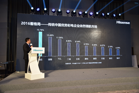 1月12日,海信在北京發(fā)布2016-2017電視產(chǎn)業(yè)年度發(fā)展報告,海信電器總經(jīng)理胡劍涌對2016-2017彩電市場發(fā)展趨勢進(jìn)行了分析,并提出未來海信將堅持高端精品戰(zhàn)略,以技術(shù)引領(lǐng)市場,做全球高端電視領(lǐng)導(dǎo)品牌。