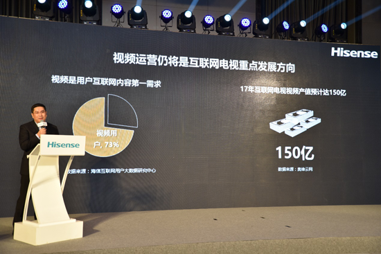 海信報告顯示,在線視頻是互聯(lián)網(wǎng)電視用戶第一內(nèi)容需求,海信互聯(lián)網(wǎng)電視視頻用戶數(shù)已占到整體激活用戶數(shù)的73%。2017年,互聯(lián)網(wǎng)電視視頻產(chǎn)值預(yù)計將達(dá)到150億元,因此,視頻運(yùn)營仍將是互聯(lián)網(wǎng)電視重點(diǎn)發(fā)展方向。