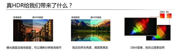 HDR技術(shù)的看點(diǎn)在于大幅度增加畫面亮度,普通電視的亮度大約是400尼特左右,而互聯(lián)網(wǎng)電視通常只有250-300尼特。海信憑借強(qiáng)大的芯片研發(fā)能力,通過Hi-View Pro芯片極大的提升電視亮度,畫面動態(tài)范圍、,將正常情況下畫面亮度提升至900尼特的高水準(zhǔn)。高亮度可以是的畫面更加漂亮,在顯示戶外圖像時的真實(shí)感也會大增。同時HDR技術(shù)能夠帶來更大的對比度,因?yàn)橥ㄟ^提升亮度能夠直接帶動極限亮度和背光下的對比度表現(xiàn)。提升對比的能讓畫面中明亮處更亮麗,暗處細(xì)節(jié)層次分明。