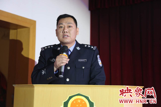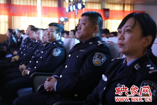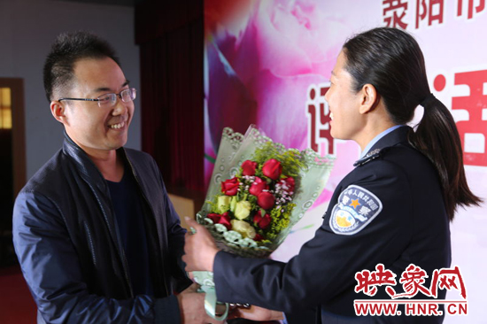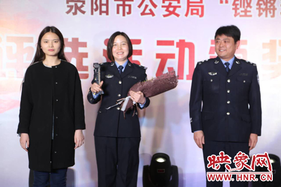 滎陽(yáng)市公安局政委張毅凡給獲獎(jiǎng)女警頒獎(jiǎng)