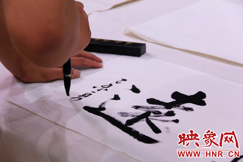 王丙申老師現(xiàn)場展示書法(丁靚琦/攝)