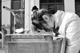 父親托村里的木匠為郭向鴿打造了一架特殊的“小車”——全身木質(zhì)結(jié)構(gòu),主體是一個木頭椅子,座位上有一個能打開的洞,便于郭向鴿上廁所;兩側(cè)安裝了擋板,防止她跌落;面前是一張小桌板,桌板上有一個固定飯碗的卡槽;下面還有一個小抽屜?!靶≤嚒毕路接?個輪子,椅子靠背和桌板一側(cè)各有一個把手,是用來移動“小車”的。輪子只能直來直去,需要拐彎時,只能費(fèi)力地抬起扶手,把小車整個扭轉(zhuǎn)個方向,再推著繼續(xù)前進(jìn)?!靶≤嚒钡闹谱麟m然粗糙,每一個細(xì)節(jié)卻十分人性化。從小到大,這樣的小車郭向鴿已經(jīng)坐壞了好幾輛。隨著郭向鴿的成長和護(hù)理經(jīng)驗(yàn)的積累,父親不斷改進(jìn)“小車”,最終形成了現(xiàn)在的模樣。每天早晨,郭向鴿醒來后,母親就艱難地將她從床上扶到小車上,晚上睡覺時再扶到床上。郭向鴿的吃喝拉撒都在小車上完成,這樣的日子已經(jīng)過了25年。有時候,當(dāng)冬天的陽光灑進(jìn)庭院,母親就會推郭向鴿出來曬曬太陽。但是,如果要推她出院門,郭向鴿是說什么都不會同意的。
