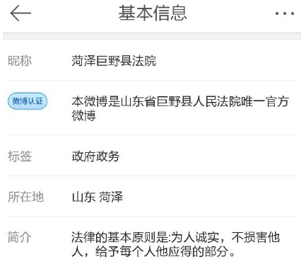 認(rèn)證為“山東省巨野縣人民法院唯一官方微博”的賬號力挺馬蓉,并附文:“一紙聲明,高下立判,王寶強(qiáng)就這樣趕絕孩子他媽媽!”