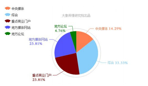 上圖可以看出,關(guān)注此事件的網(wǎng)絡(luò)媒體中,綜合類網(wǎng)站傳播活躍度最高,重點(diǎn)商業(yè)門戶網(wǎng)站和地方媒體網(wǎng)站旗鼓相當(dāng)、緊隨其后。