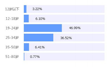 參與微博討論的網(wǎng)友中,年齡集中分布在19-34歲,共占比 83.51%,其中19-24歲占比最高,為46.99%。19-24歲為90后群體,這個(gè)群體自信張揚(yáng)、充滿激情、向往自由,“世界那么大,我想去看 看”這句話在年輕群體中倍受追捧。