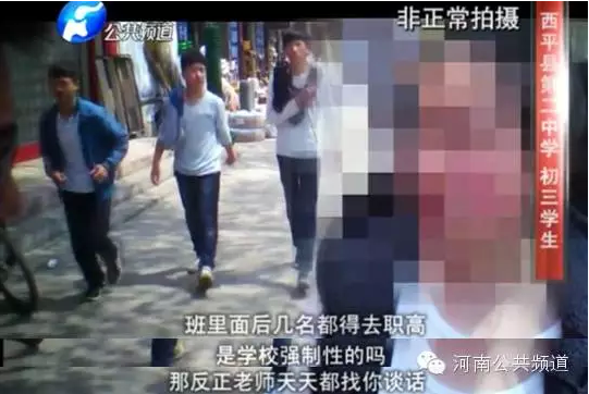 而記者還了解到,這些成績不理想的學(xué)生目前大多已經(jīng)離校,絕大部分都就讀了河南省西平縣職業(yè)教育中心——一所職業(yè)高中。