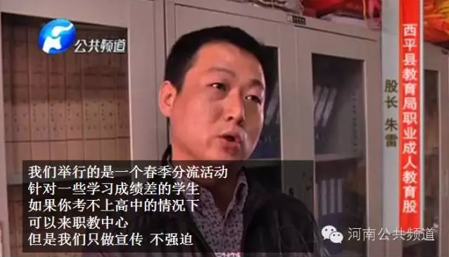 為了讓記者相信轉(zhuǎn)移學(xué)生純屬自愿,朱部長又叫來了剛剛拒絕接受我們采訪的,西平縣第二中學(xué)副校長劉新華,這次他的態(tài)度來了個180度大轉(zhuǎn)彎。