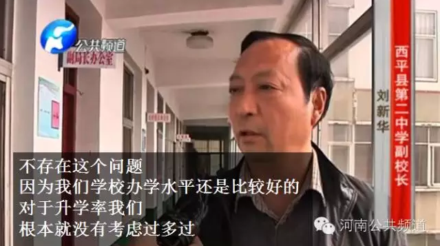 為了升學(xué)率、為了利益,不惜出賣學(xué)生嗎?為了證實家長的說法,記者又回到了西平縣二中,可是卻被學(xué)校保安拒之門外,隨后記者撥打了西平二中副校長劉新華的電話。
