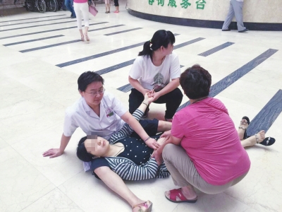 本報周口訊6月18日一早,市民孫女士在婆婆的攙扶下前去周口市中心醫(yī)院準備就診。由于未到上班時間,正在候診的孫女士突然下身出血暈倒。提前到崗的門診值班醫(yī)生張玉玲恰巧看到這一幕,立即坐在地上用大腿當“病床”墊起孫女士的頭部,并采取急救措施,最終使孫女士脫離了生命危險。