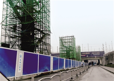農(nóng)業(yè)路跨鐵路橋西側(cè)橋墩已經(jīng)開(kāi)始矗立