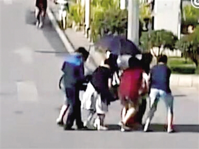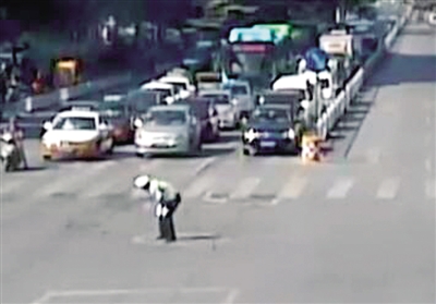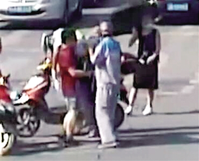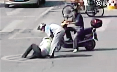 騎電動車經(jīng)過的兩名男子見狀,立刻上前將王宏釗攙扶起來,緊接著又有幾位市民趕到。一名穿著紅色上衣的男子將王宏釗扛在肩頭,一位女士給王宏釗打傘遮陽,眾人一起把王宏釗轉移到路邊。聞訊趕來的其他交警在這個路口補位,繼續(xù)指揮交通。