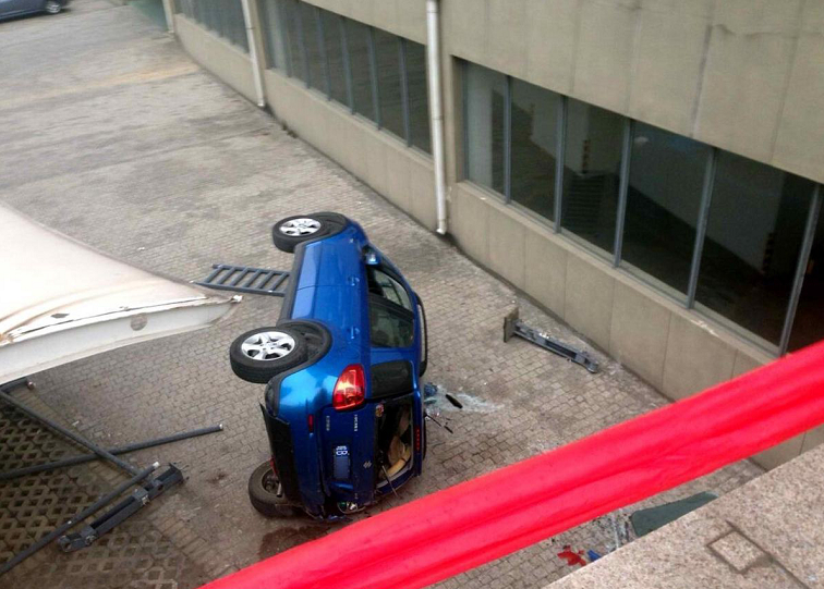 10.女司機(jī)倒車墜下6米高臺 幸好人沒事兒