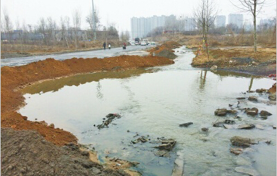 市民王先生反映,南水北調(diào)大橋南邊的祈福大道上,到處都是積水?,F(xiàn)在水深一米多,長(zhǎng)度有近百米,連公交車都不能通過(guò)。“昨天下雨,積水更深,啥車都過(guò)不去。我們?cè)谶@里幫助推滅火的車,不知推了多少輛?!?/font>