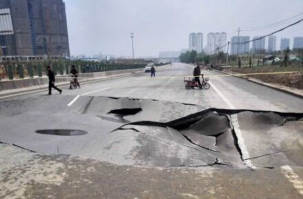 2日,開通不到半年的鄭登快速路在一場不大不小的雨后,塌陷出長16米、深1.1米的“天坑”。當時一輛殯儀車經(jīng)過,沖出塌陷帶后撞上了隔離墩...施工人員檢查后初步判斷,塌陷不是修路質(zhì)量原因造成,可能有人損壞了路基。大雨:怪我咯?